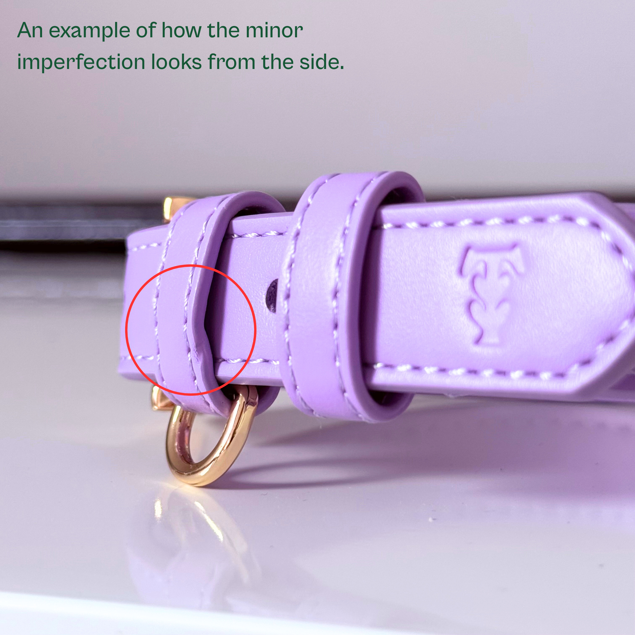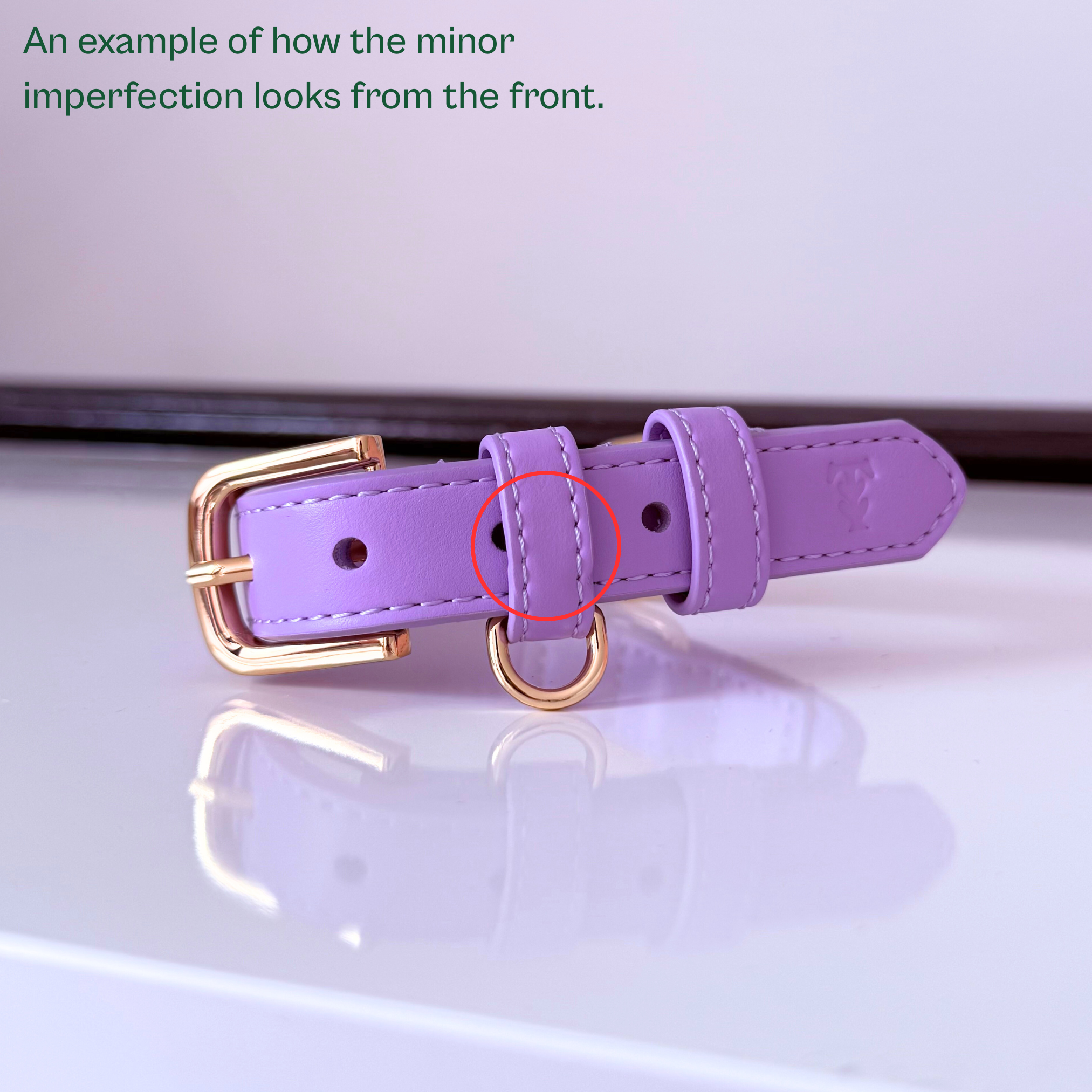 This collar is part of our Seconds Sale due to a minor cosmetic flaw: a small indent on the strap keeper where an ID tag loop has previously rested, as shown in the photos. It’s a very small cosmetic defect, most wouldn’t spot it unless they knew to look, but it doesn’t meet our usual high standards for full-price items.