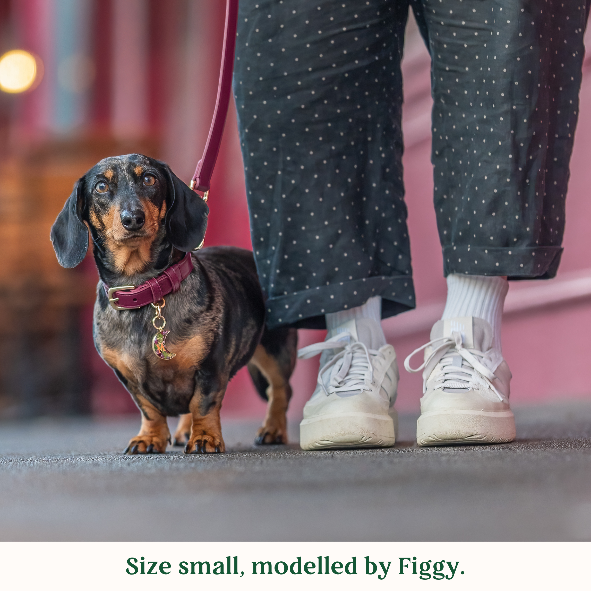 This collar is a fashion accessory designed for supervised walking. It is not intended for restraint, tethering, or unsupervised use. The dog parent is responsible for ensuring a proper fit and condition before each use.
