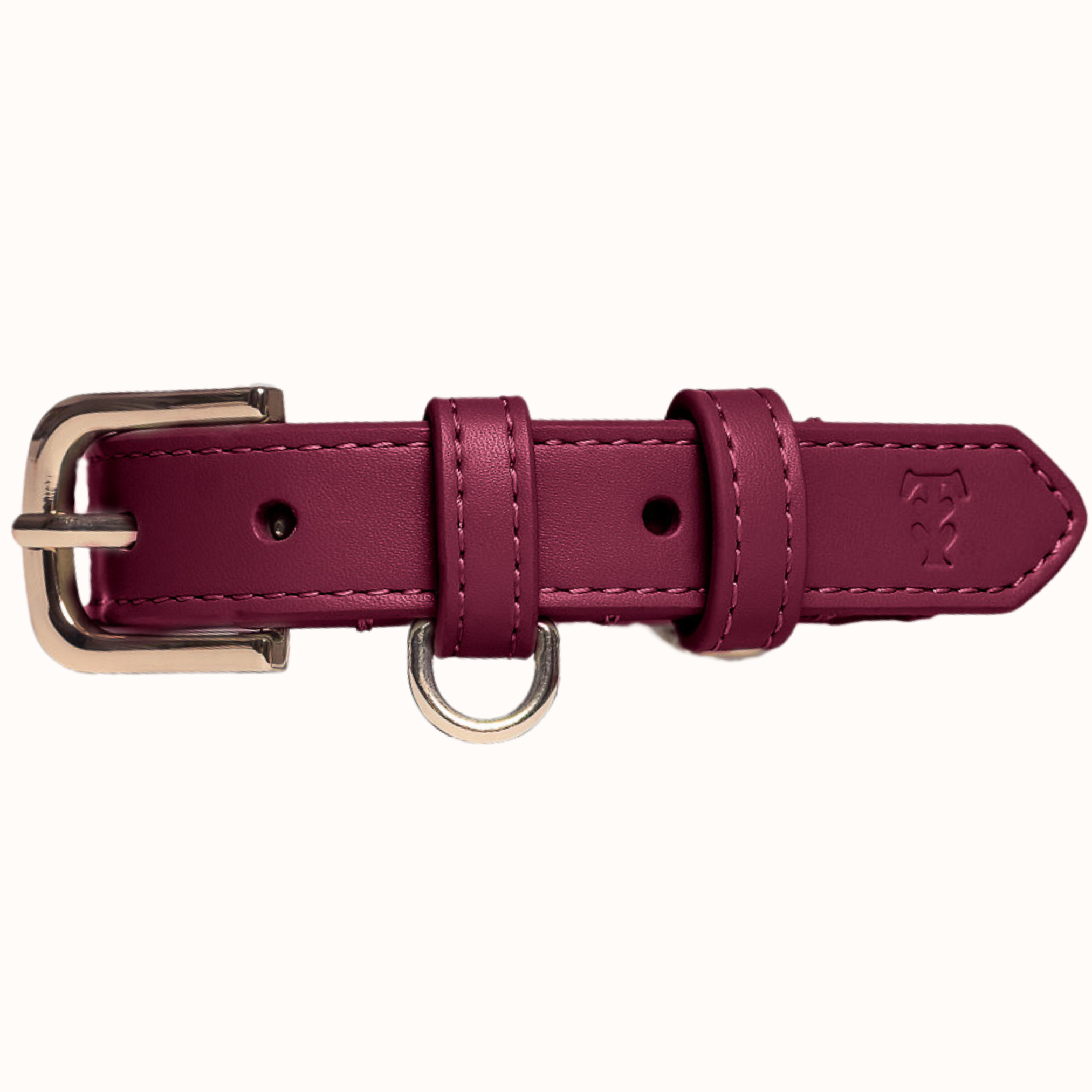 A beautiful and bold British design, crafted from smooth, deep berry vegan leather and elegantly finished with gold hardware and a subtle debossed logo.