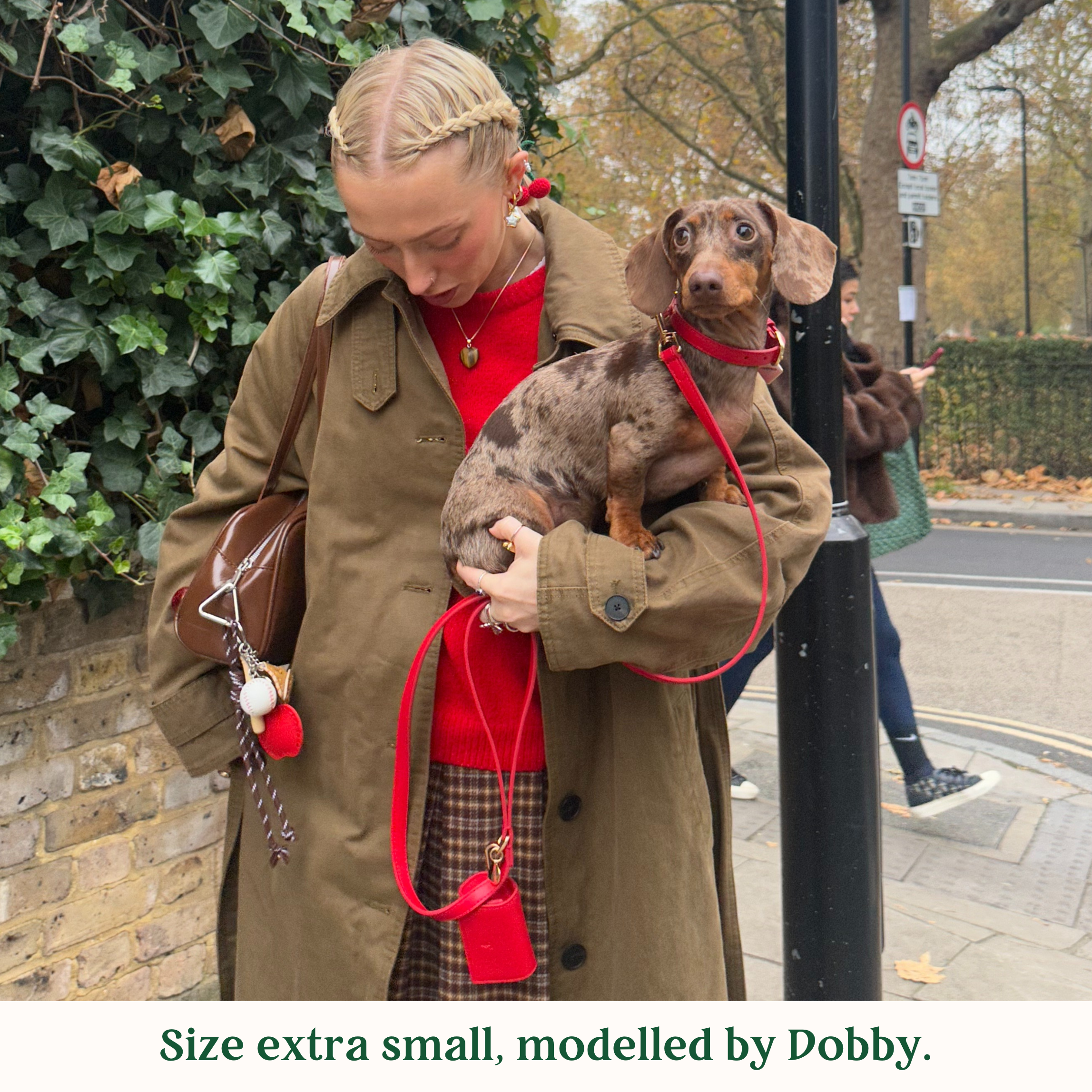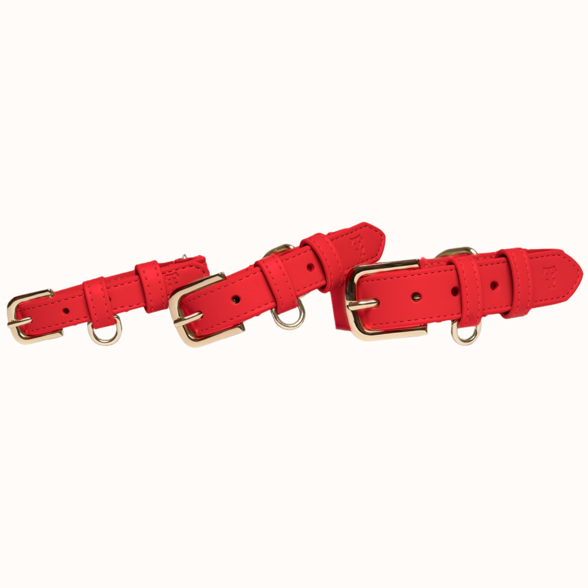 A beautiful and bold British design, crafted from smooth, vibrant red vegan leather and elegantly finished with gold hardware and a subtle debossed logo.