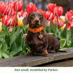 This collar is a fashion accessory designed for supervised walking. It is not intended for restraint, tethering, or unsupervised use. The dog parent is responsible for ensuring a proper fit and condition before each use.
